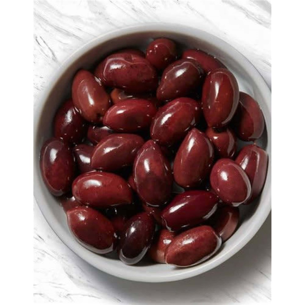 “Kalamata Olives” are almond shaped, purple-black color, firm in texture, along with their extraordinary taste. They maintain their rich flavor by being fermented in brine made by natural ingredients (sea salt and water). They are packed together with brine, wine vinegar and extra virgin olive oil.